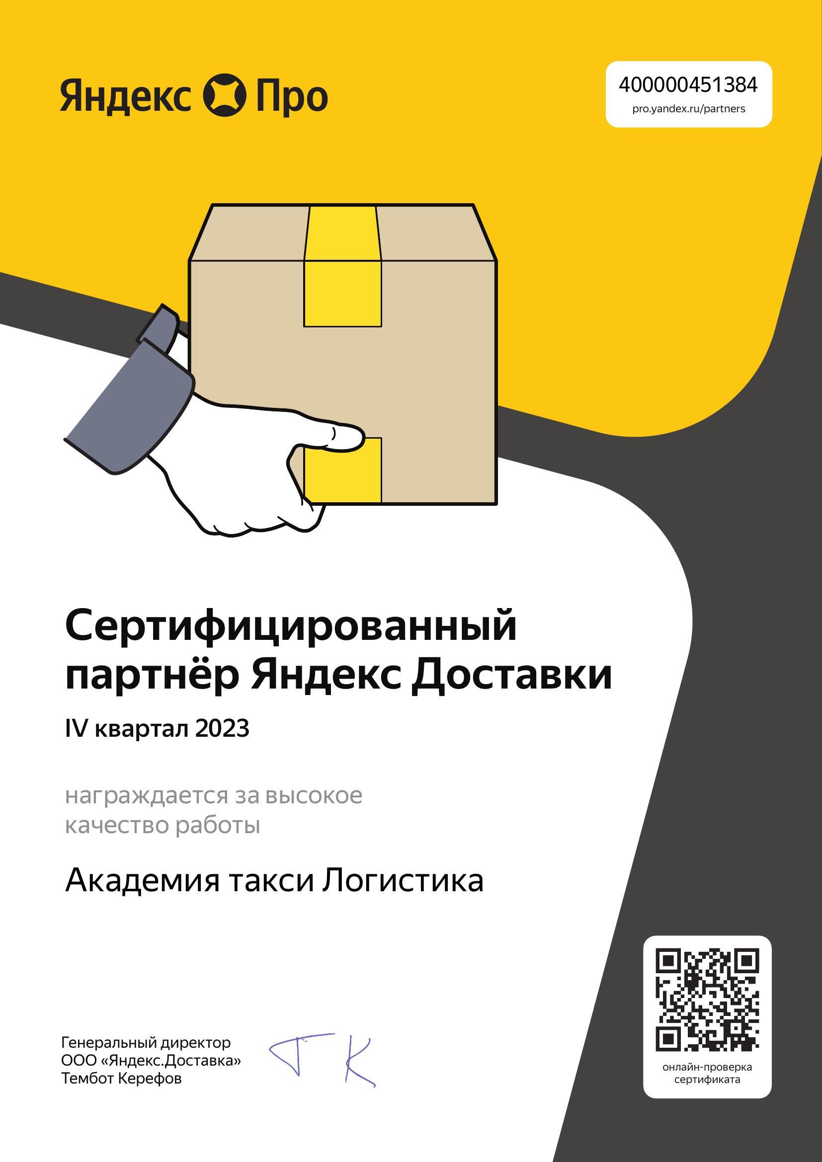 Итоги сертификации Яндекс Доставка — IV квартал 2023 года